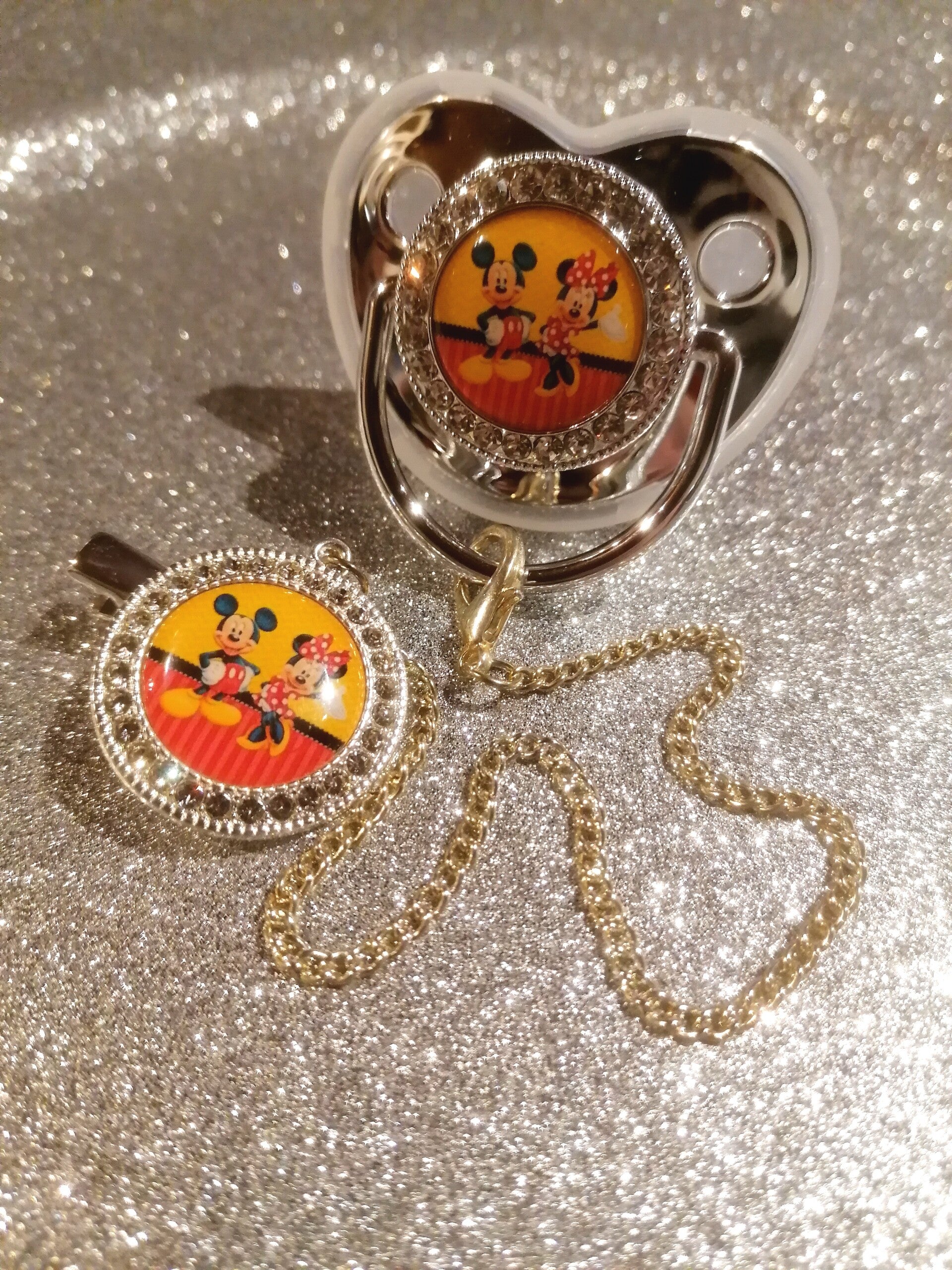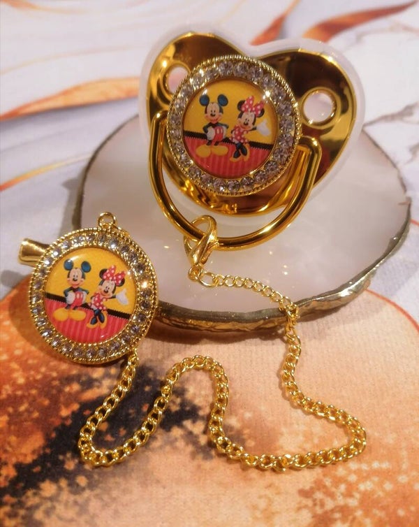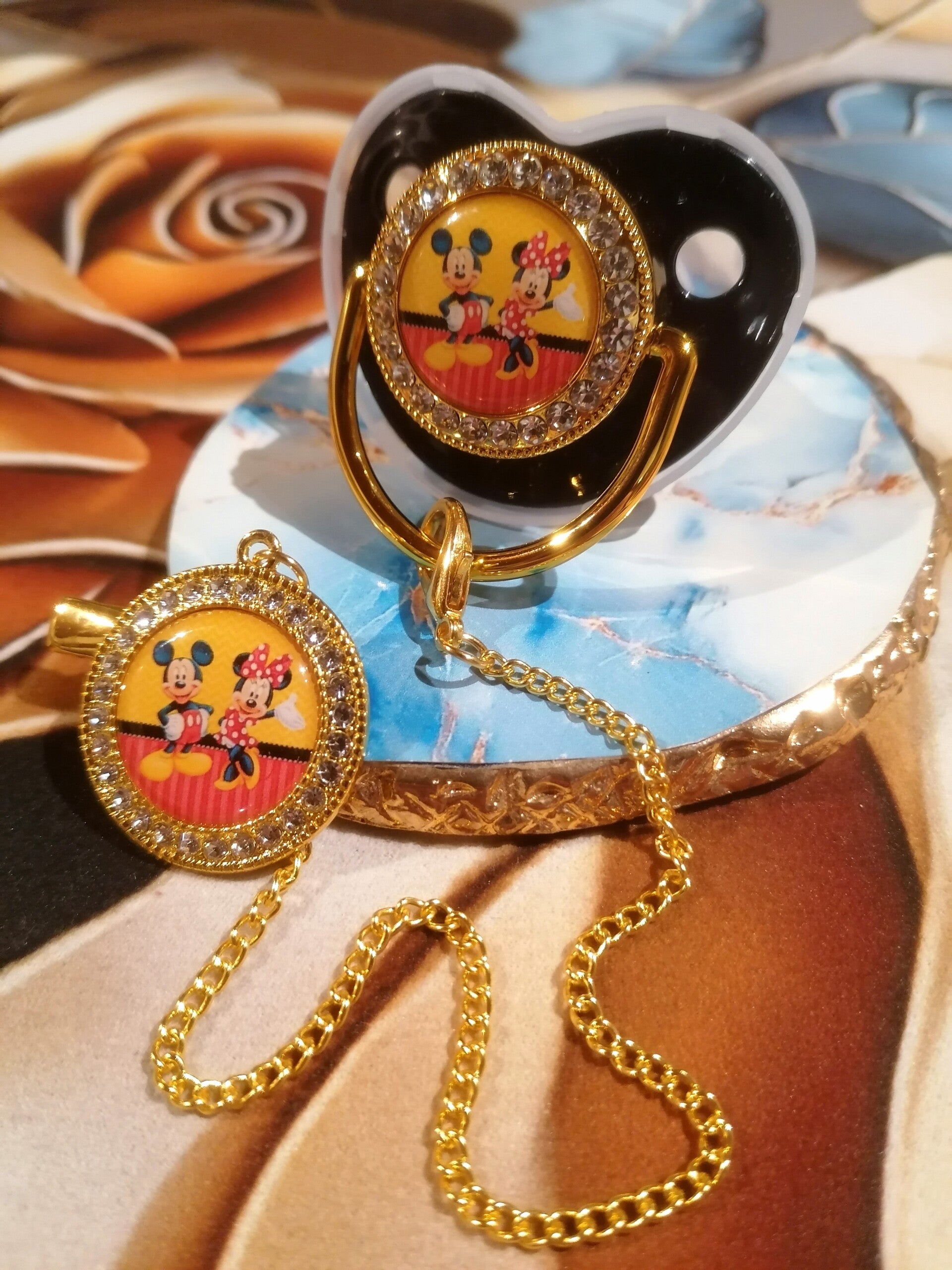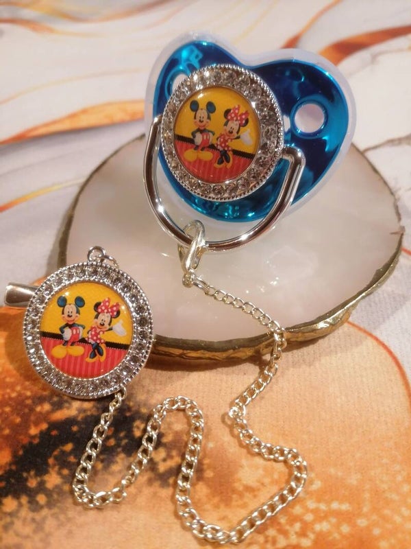 Tétine Strass avec Attache Disney Mickey & Minnie – 5 Coloris Disponibles