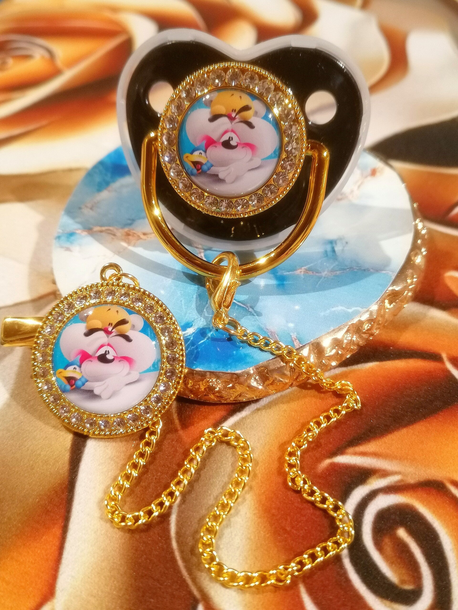 ✨ Craquez pour cette adorable tétine strass Diddl avec attache signée LTDF Création, parfaite pour allier douceur, style et praticité au quotidien !