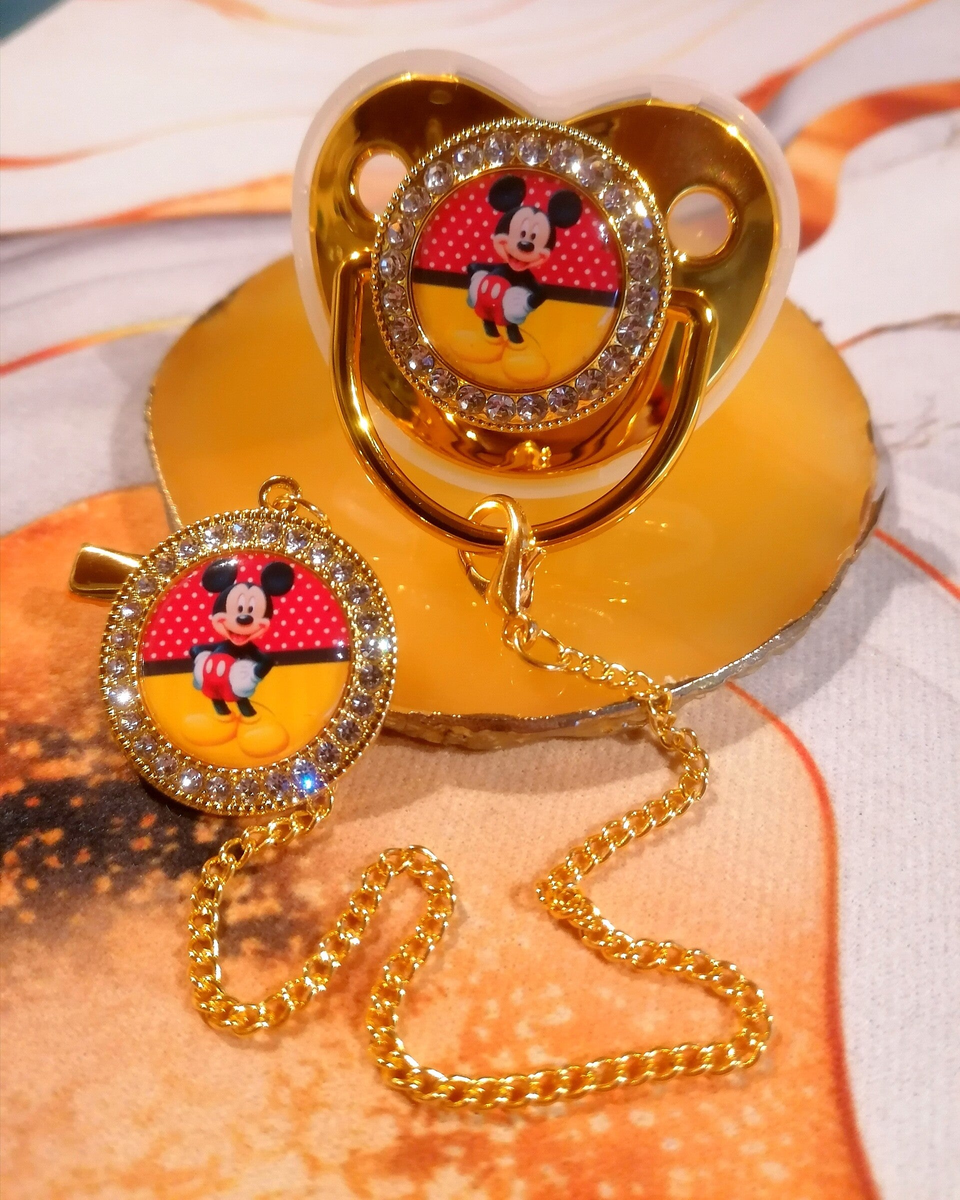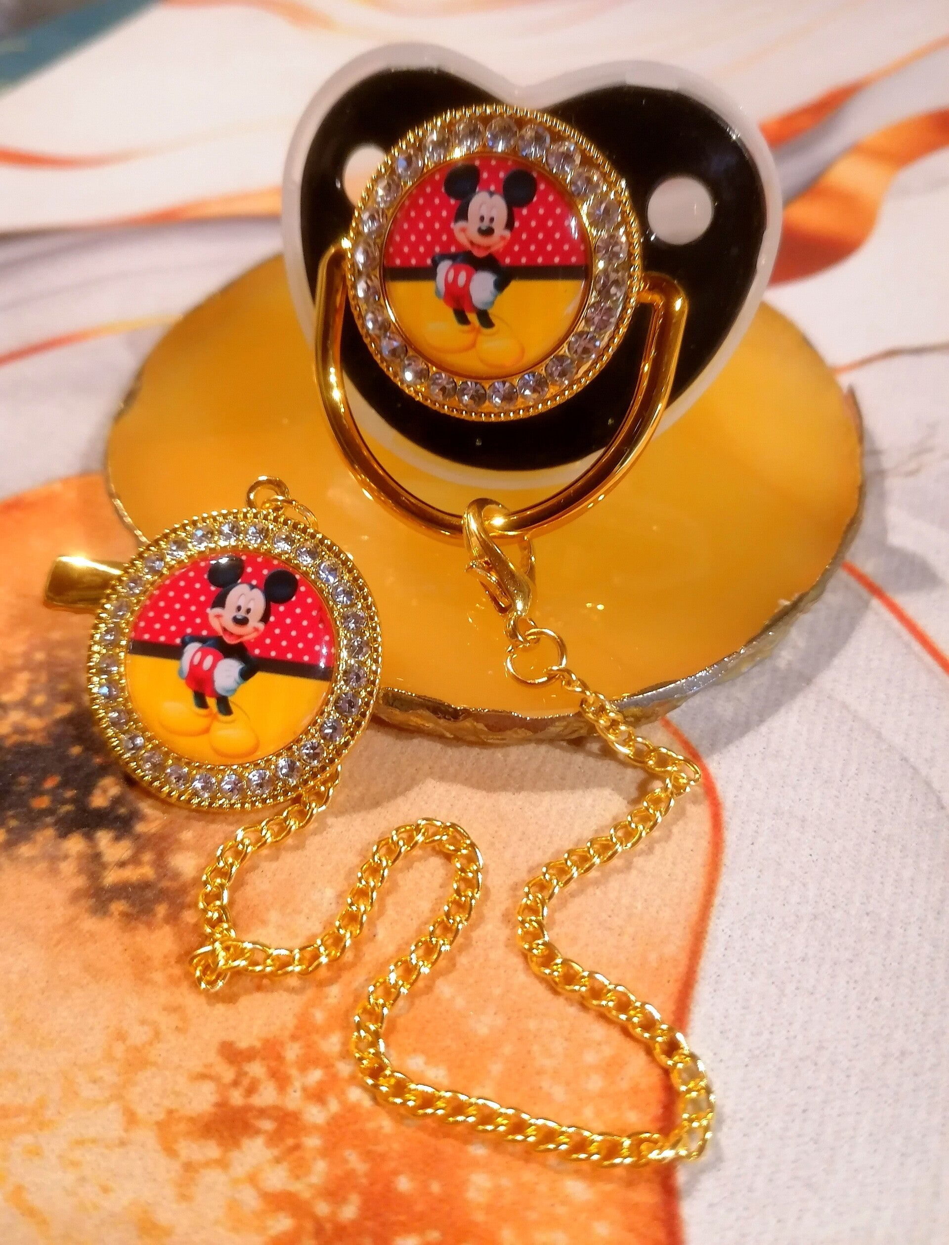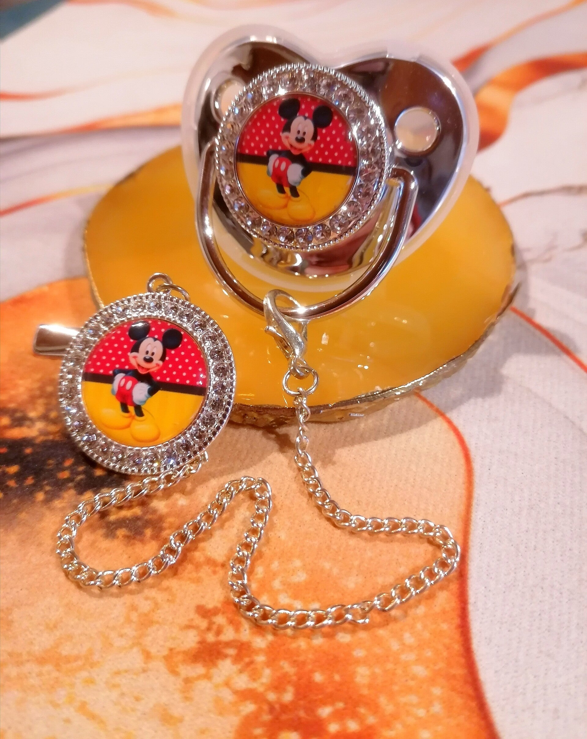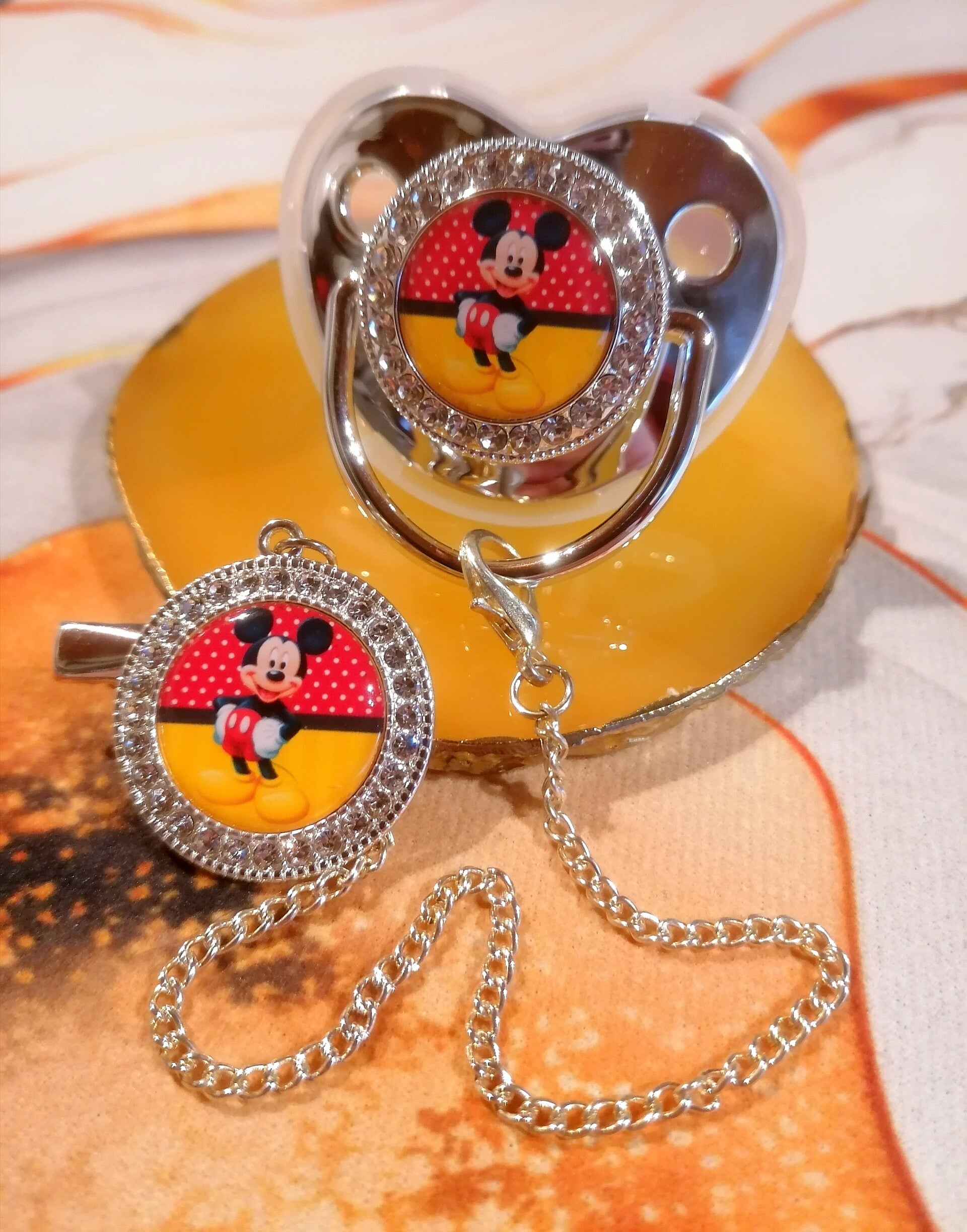 Tétine Strass Disney Mickey avec Attache – Forme Physiologique – 5 Coloris Disponibles ✨
