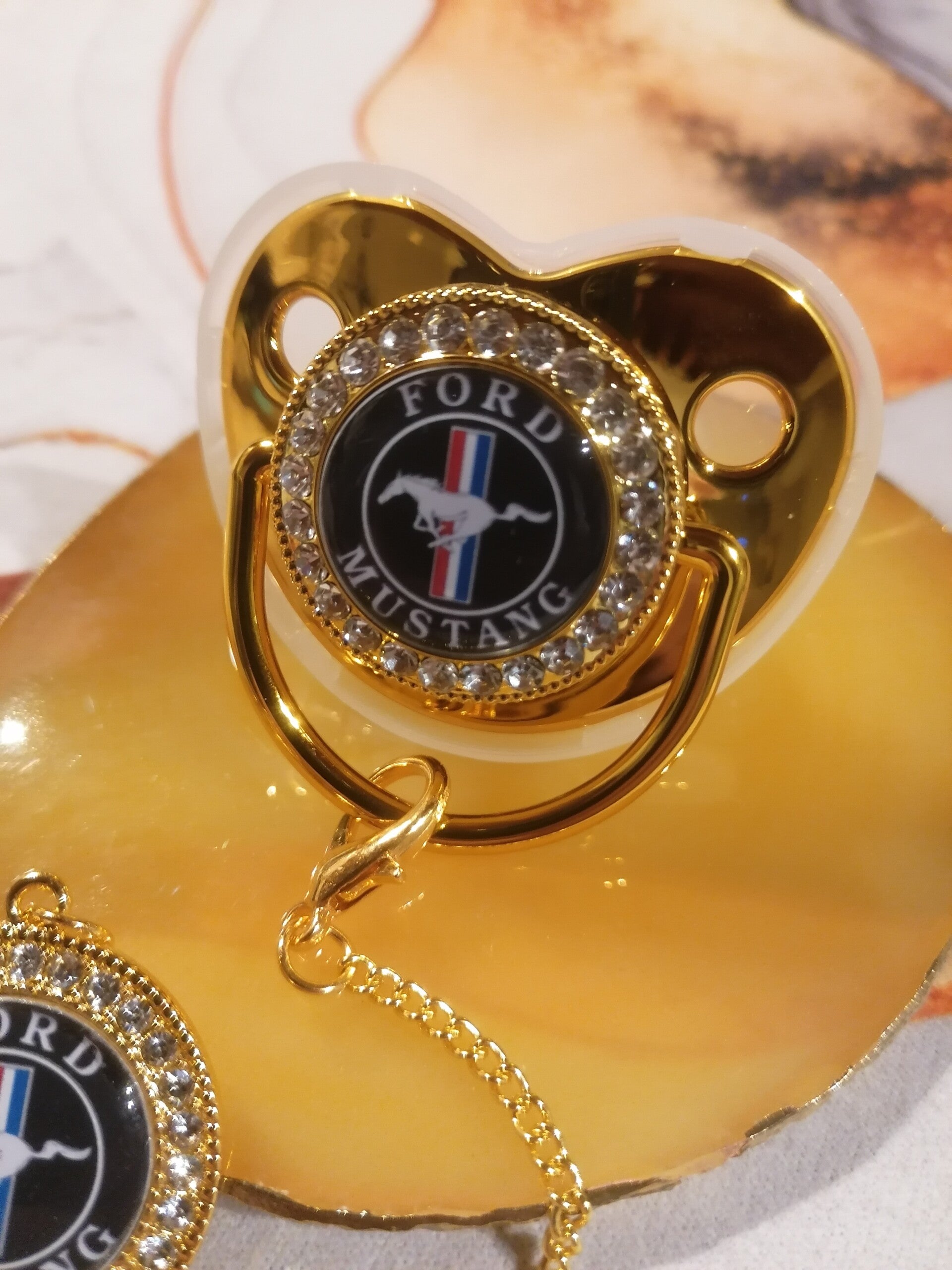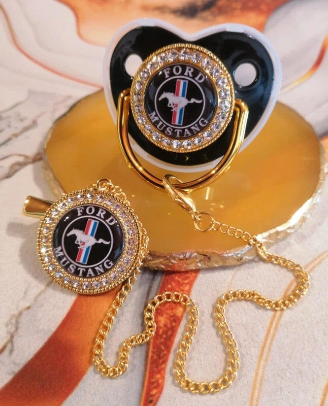 Tétine Strass avec Attache Ford Mustang – Forme Physiologique – 5 Coloris Disponibles 🚗✨