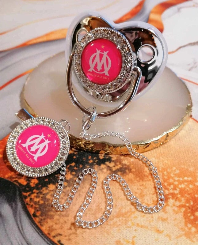 Pratique et originale, cette tétine avec attache est idéale pour accompagner bébé au quotidien, à la maison comme lors des sorties. Son design inspiré du style Olympique de Marseille plaira aux parents supporters qui souhaitent ajouter une touche sportive aux accessoires de bébé.