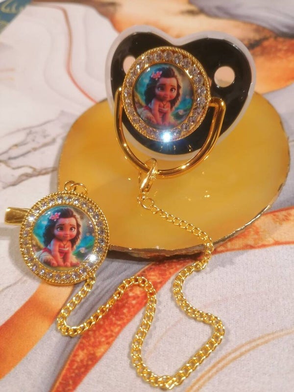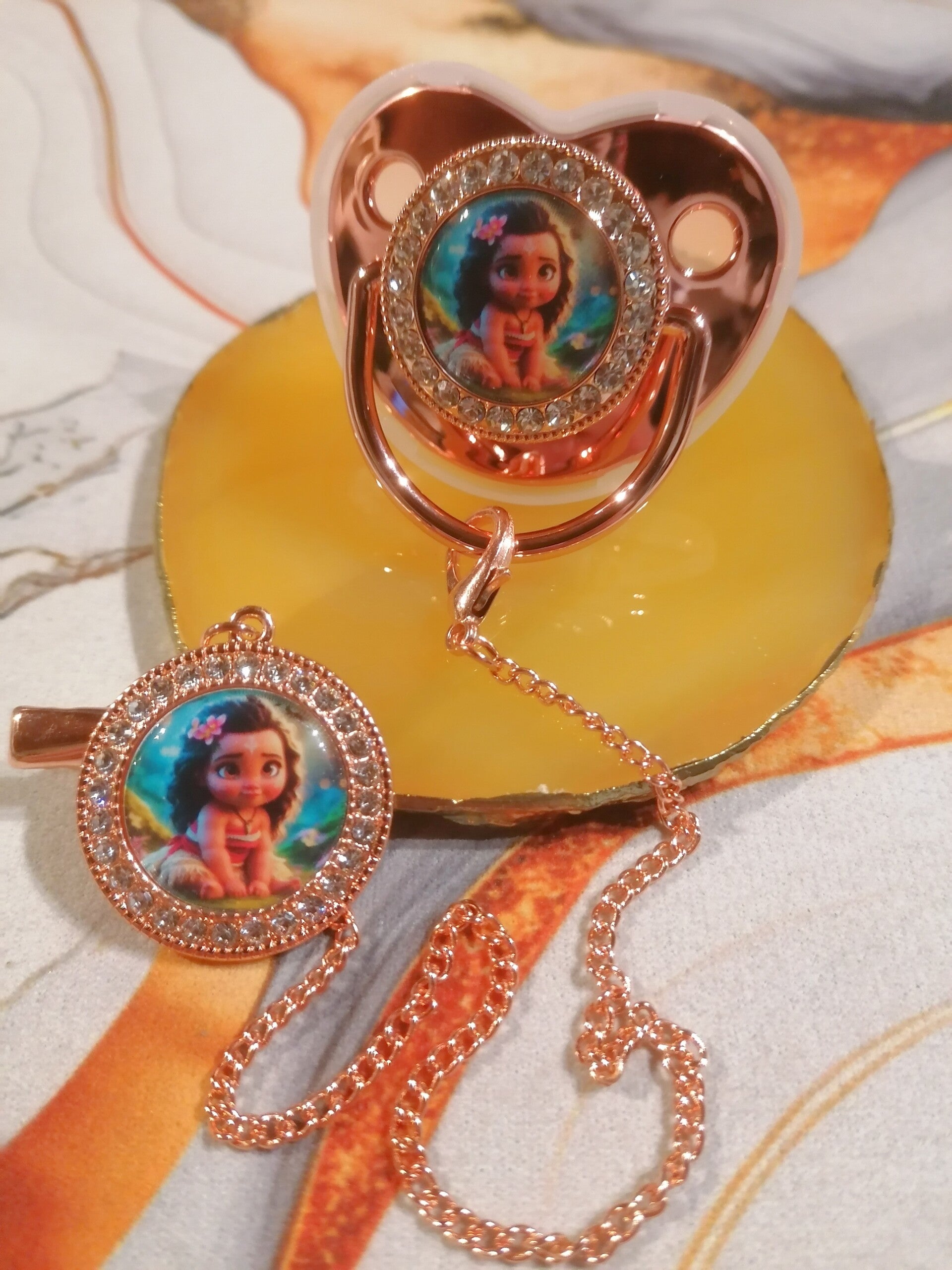 Tétine avec attache style Vaiana – Forme physiologique bébé | 5 couleurs disponibles