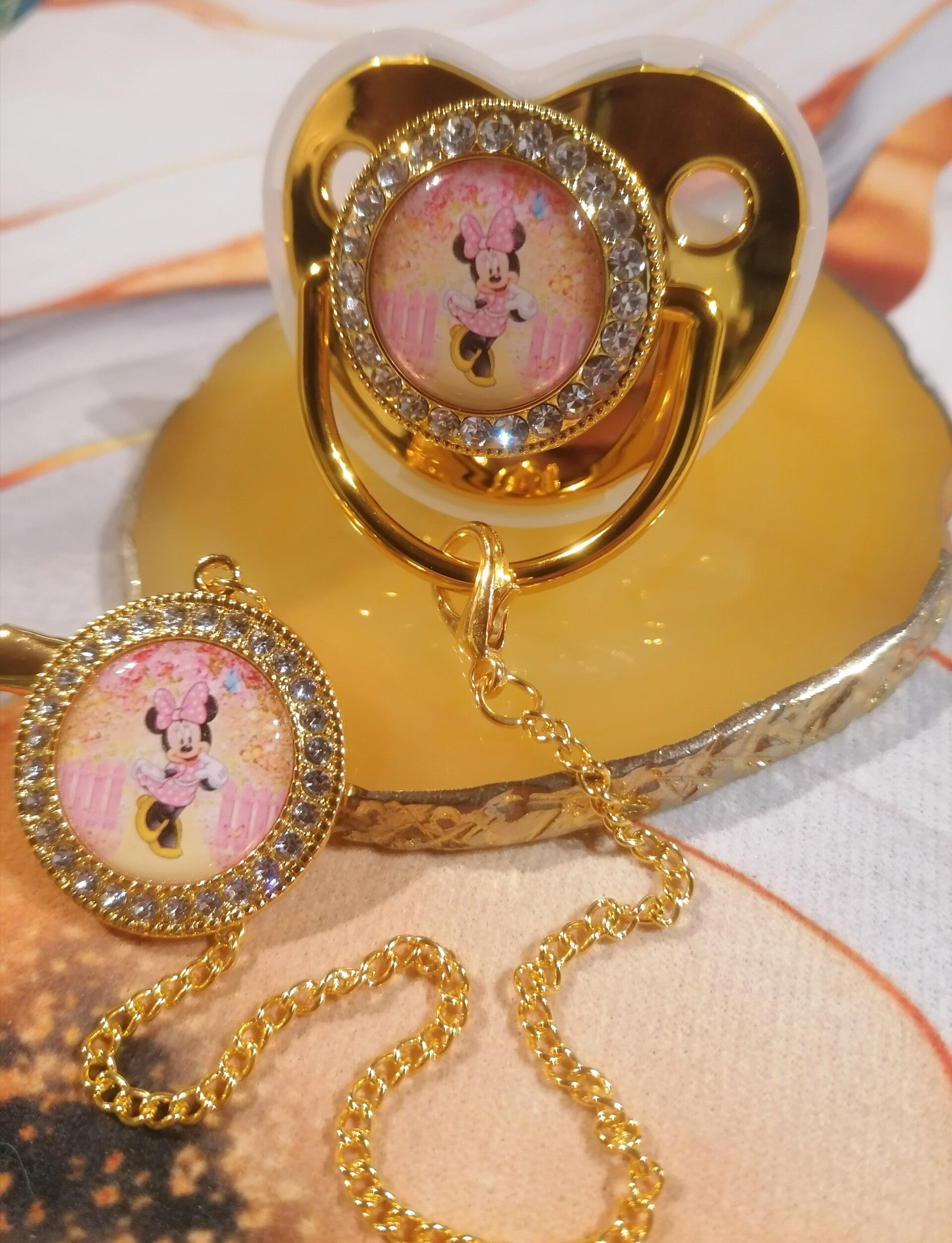 Tétine avec attache style Minnie – Forme physiologique bébé | 5 couleurs disponibles