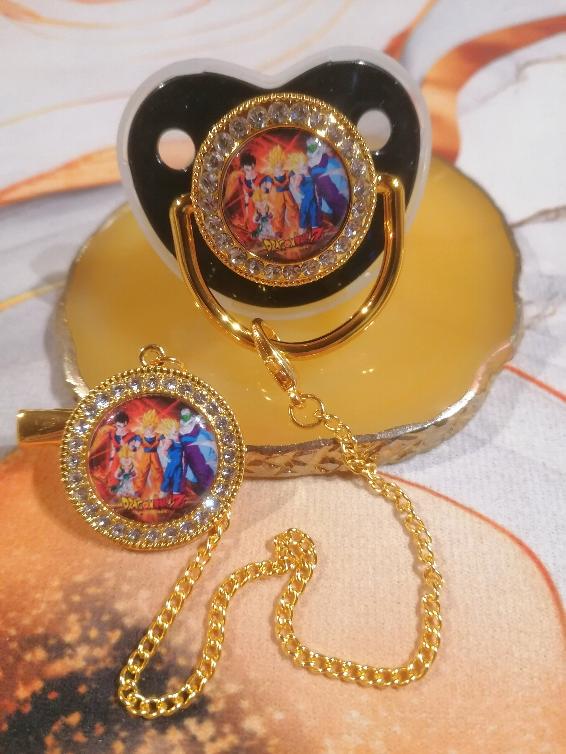 Tétine avec attache style Dragon Ball Z – Forme physiologique bébé | 5 couleurs disponibles