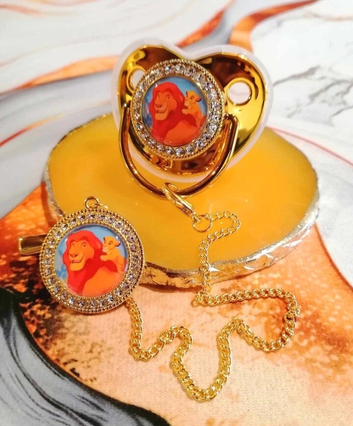 Tétine avec attache style Le Roi Lion – Forme physiologique bébé | 5 couleurs disponibles