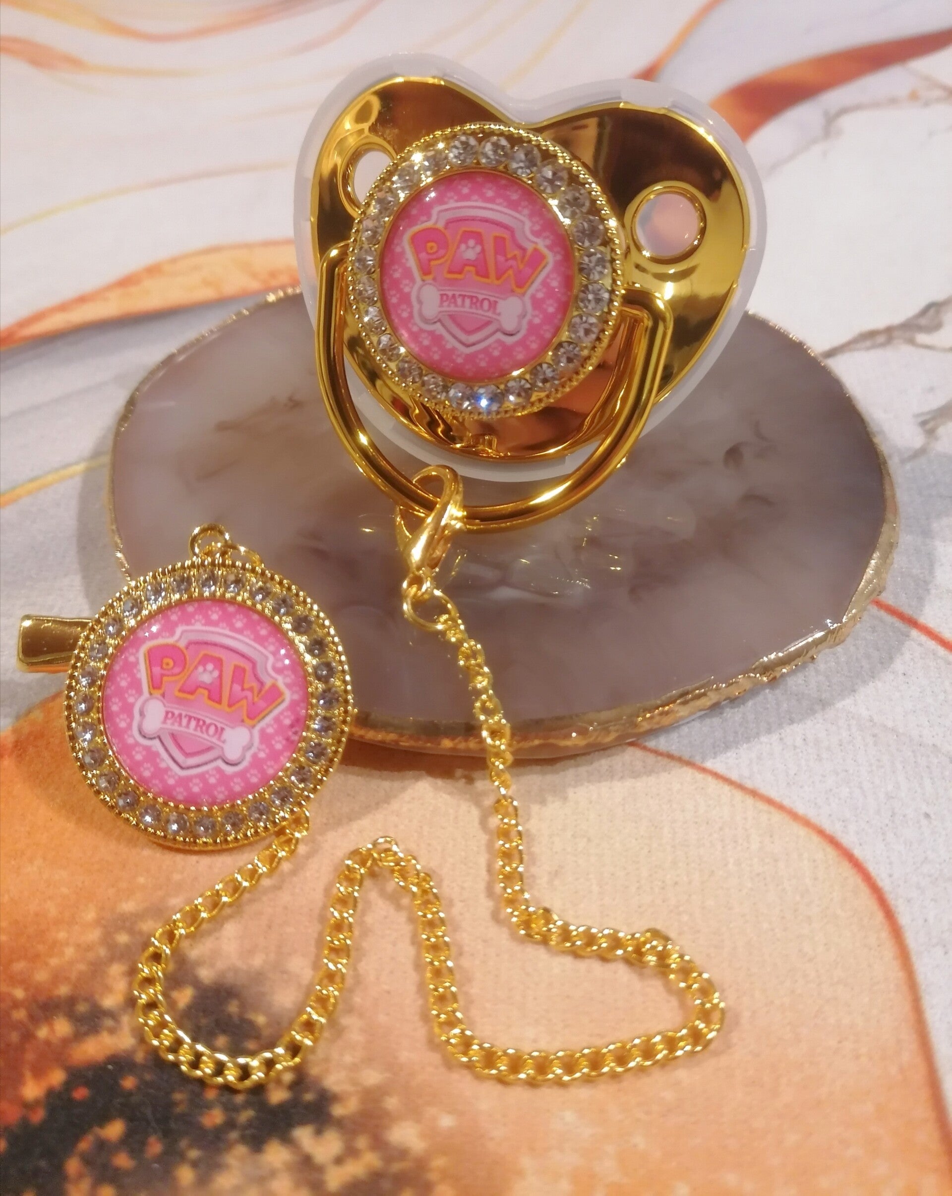 🐶 Craquez pour cette adorable tétine Pat’ Patrouille rose avec attache signée LTDF Création, parfaite pour allier douceur, sécurité et praticité au quotidien !